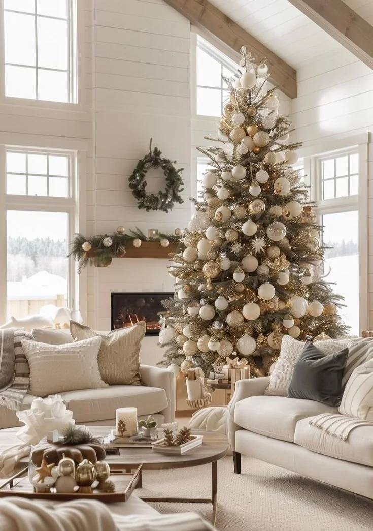 This Christmas, I’ll be completely transforming my living room. I’m going for a mix of contemporary minimalism with classic, cozy touches. I’ll start with natural greenery—a lush, asymmetrical wreath as a focal point and some evergreen branches draped along the mantel or in vases/ stockings. For a warm, elegant glow, I’ll use tall green and ivory taper candles with satin ribbons in soft neutrals.